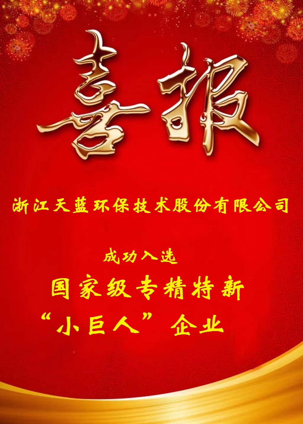 近日,浙江省經濟和信息化廳發(fā)布了《關于浙江省第四批專精特新“小巨人”企業和第一批專精特新“小巨人”復核通過企業名單的公示》,天藍環(huán)保憑借在大氣污染治理領域的技術創(chuàng)新綜合實力和市場占有率,成功入選國家級專精特新“小巨人”企業名單。